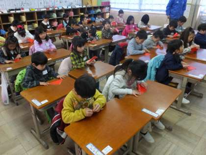 しっかり話を聞いて,真似をしながらおり紙にも頑張りました。