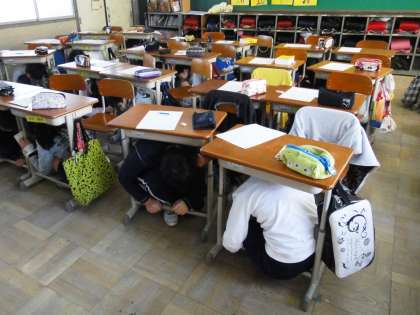 9時30分より一斉に,地震の揺れから身を守る訓練をしました。