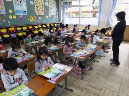さっそくお話を聞いたり教科書を見たりして,緊張のスタートです。
