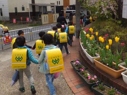 明日も元気で登校してきてくださいねと,チューリップも見送りです。