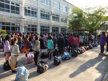 「自然と歴史について学び,ルールを守って集団行動に頑張ろう。」