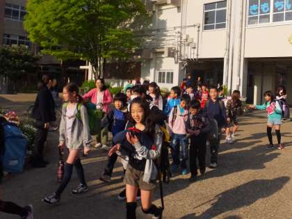 「行ってきます。お見送りの皆さん,ありがとうごさいます。」