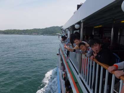 海を渡る船の旅を景色と共に楽しんでいました。
