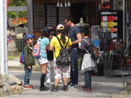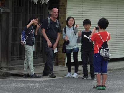 外国の観光客に挨拶をして一緒に記念撮影という課題がありました。