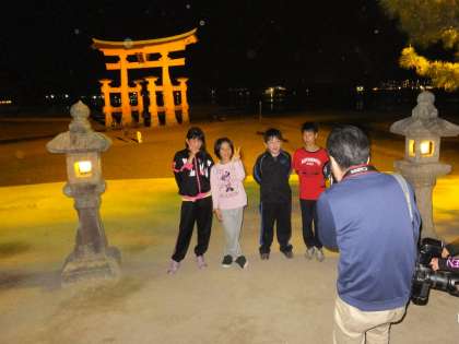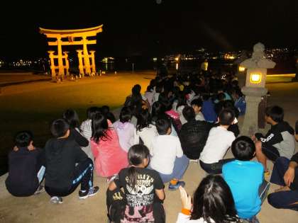 夜の散策でライトアップを楽しみ,22時には全員おやすみしました。