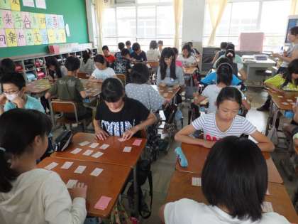 リレーに頑張る3年生,百人一首に頑張る6年生など,楽しんでいます。