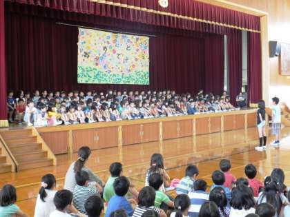 児童会主催で学年からの心温まる歌や言葉のプレゼントがありました。