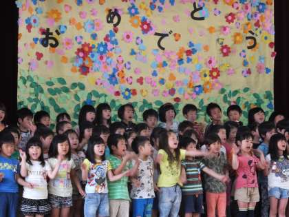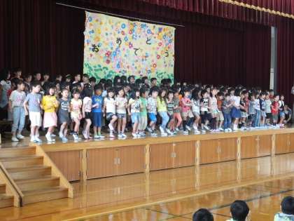 1年「さんぽ」 歌と手話で元気な一年生のお返し発表をしました。