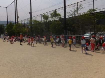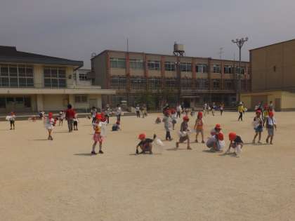 1年生は大きな運動場の「小石拾い」を,親子で1時間頑張りました。