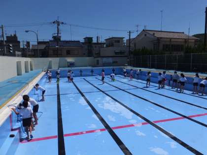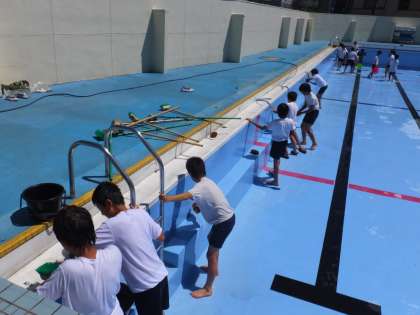 6年生の皆さんが水泳学習のできるようにプール掃除をしてくれました。