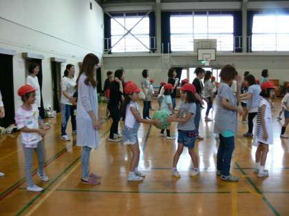 クラス対抗の「ボール送り」で,声援も大きく盛り上がりました。