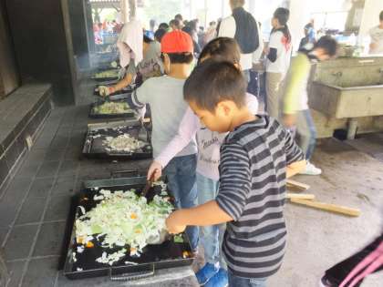 かまど係の出番ですが,昨日の雨で薪が湿っていて往生しました。
