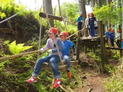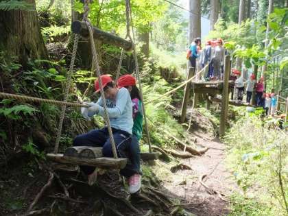 珍しいアスレチックは,順番待ちができるくらいの大人気ぶりです。