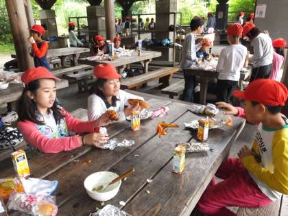 ケチャップをつけて,おいしいおいしいパックドッグの完成です。