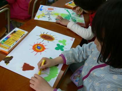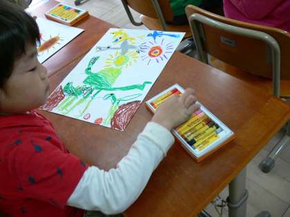 パスを使って,おひさまと好きなものを描いています。