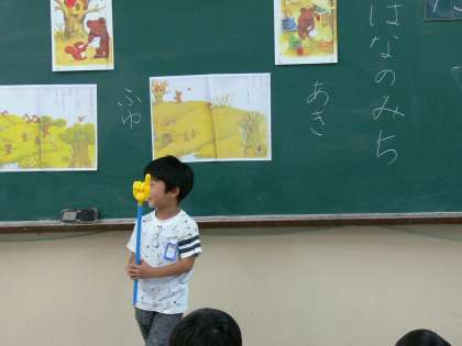 みんなの前に出て説明しています。