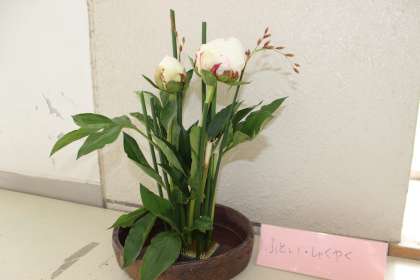 月曜日の部活では,芍薬と太藺を活けました。