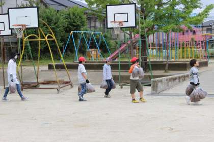 ひまわり学級の子どもたちは運動場西側をきれいにしてくれました。