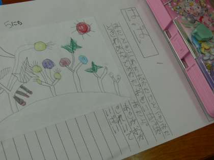 あさがおの成長を,絵や文でまとめました。