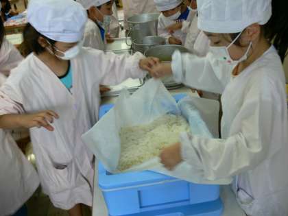 7月です。給食当番もだいぶ慣れ,手際よくできています。