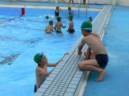 どんな泳法でもよいので,25m泳ぐことを目標にして泳いでいます。