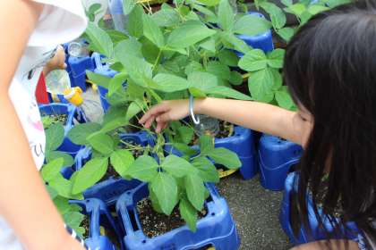 自分の野菜に水をあげています。