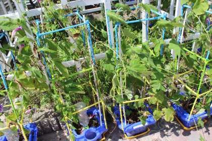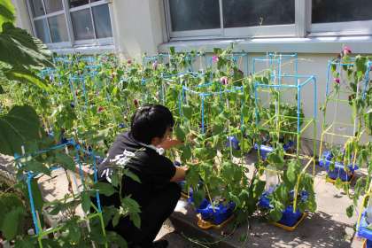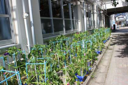 今日あさがおの鉢の支柱の補強をしていただきました。