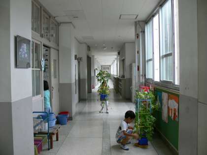廊下に運んできました。保護者の皆様お願いします。