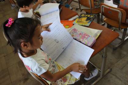 初めての宿題をもらって,喜んでいました。
