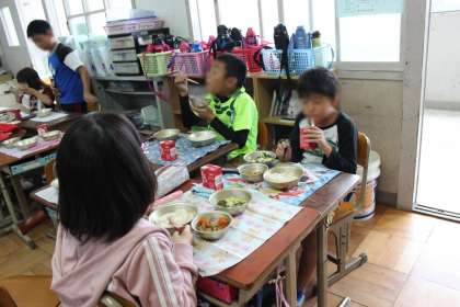 4年生のクラスに入って,子どもたちと一緒に給食をいただきました。