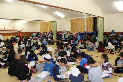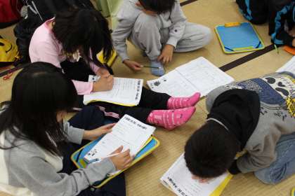 グループ毎に今日1日の振り返りをしています。