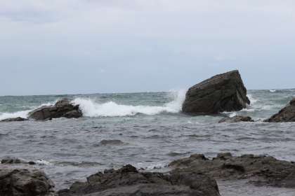 すごい強風と荒い波です。