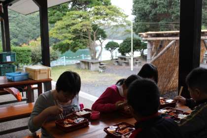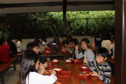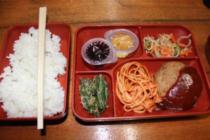 お昼はハンバーグです。とてもおいしいとよく食べています。