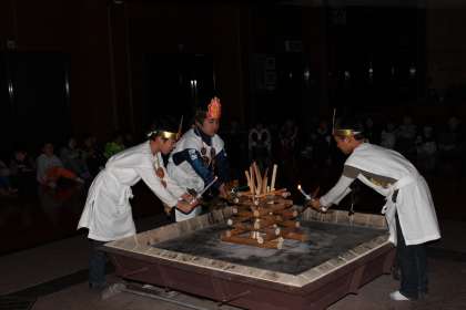 中央の薪に火が点火されました。