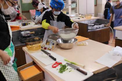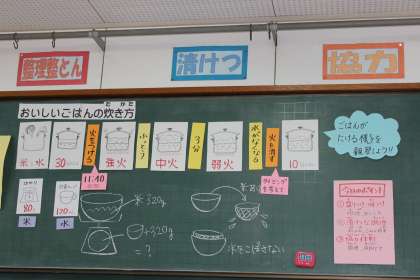 ご飯んとみそ汁の調理実習を栄養教諭の指導の下,取り組みました。