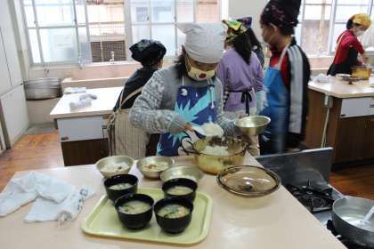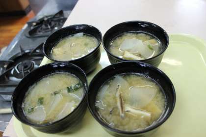ご飯が炊きあがり,お味噌汁も完成です。