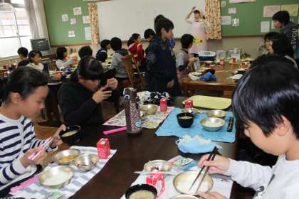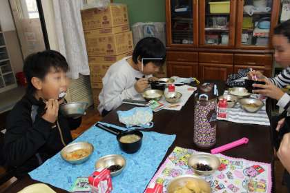 みんなで手を合わせ「いただきます。」
