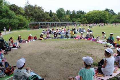 クラス毎に円になり,みんなでいただきました。