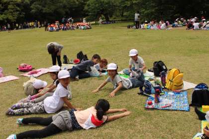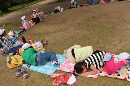 芝生の上で,ごろっと横になりました。
