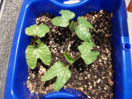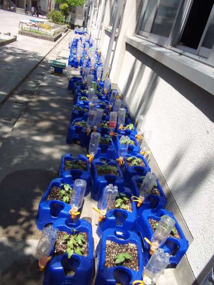 5月10日(水)に種を蒔いた「あさがお」の双葉の間から,本葉が顔をのぞかせています。