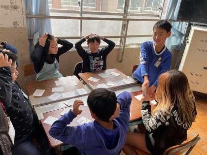 4年生の国語の授業で冬の楽しみを見つけ、かるたを作り、グループごとに実際に遊びました。冬の楽しさを感じながら楽しんでいる姿が見られました。