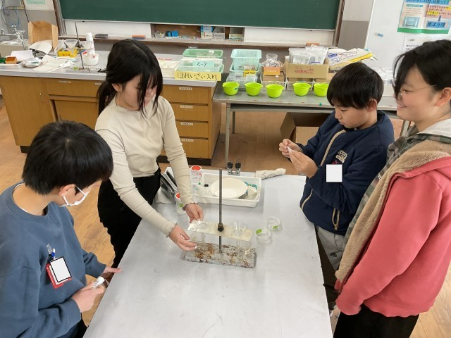 水溶液を冷やすと取り出すことができるのか実験しました。友達と協力して実験していました。