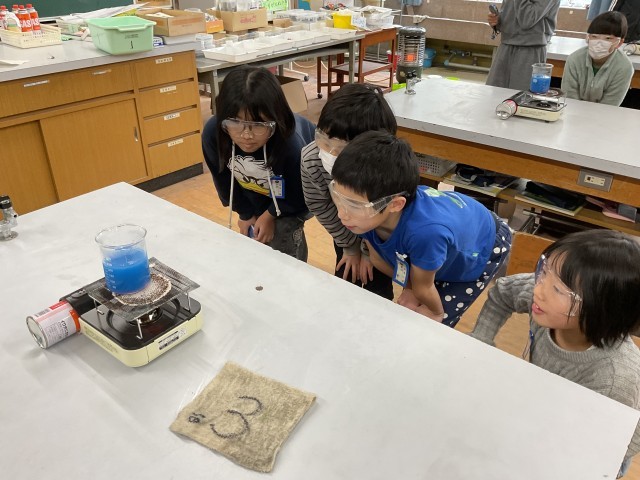 4年生の理科では、水はどのようにあたたまっていくのかという実験を行いました。上からあたたまっていくのではないか、下からあたたまっていくのではないかとさまざまな予想をしていた子どもたちでしたが、実験を通して水の温まり方を知ることができました。すでに学習している金属のあたたまり方とも比較しながら話ている様子も見られました。