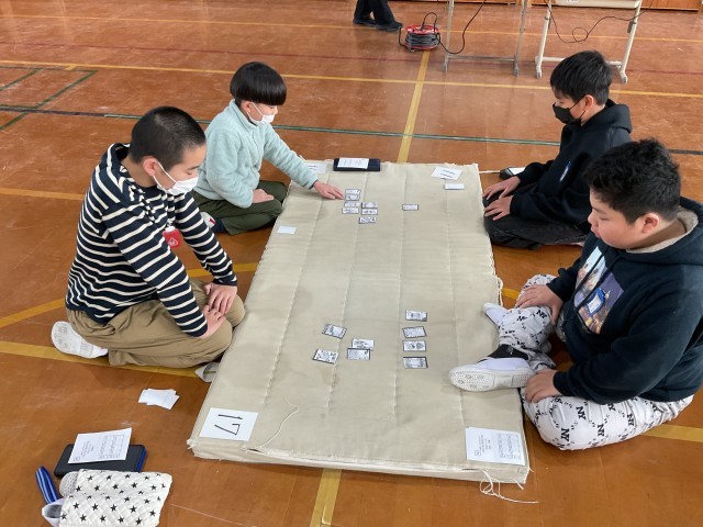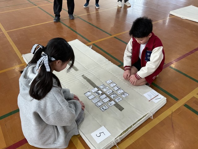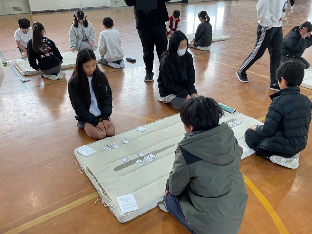高学年の山科カルタの予選を行いました。初めて山科カルタをした人もいますが、必死に1枚でも多く取ろうとする姿が見られました。