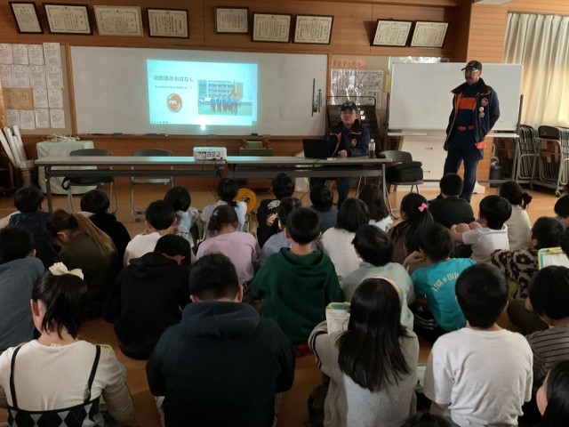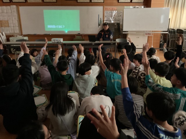 ゲストティーチャーとして消防団の方に来ていただきました。