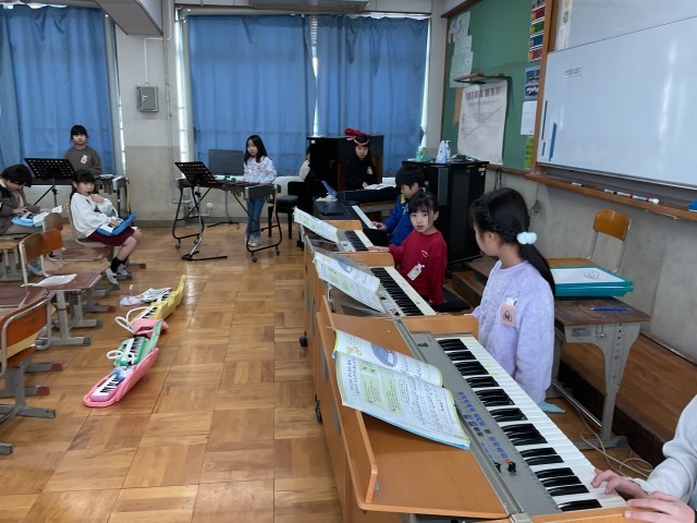「こぐまの2月」で、オルガンや木琴、低音楽器に挑戦しました。