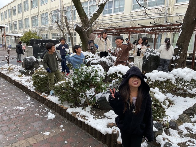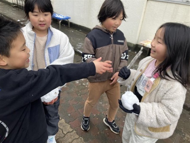 また、雪を集めて小さな雪だるまを作り始める姿もあり、出来上がるたびに満面の笑みがこぼれていました。