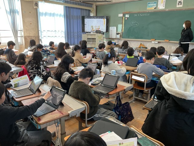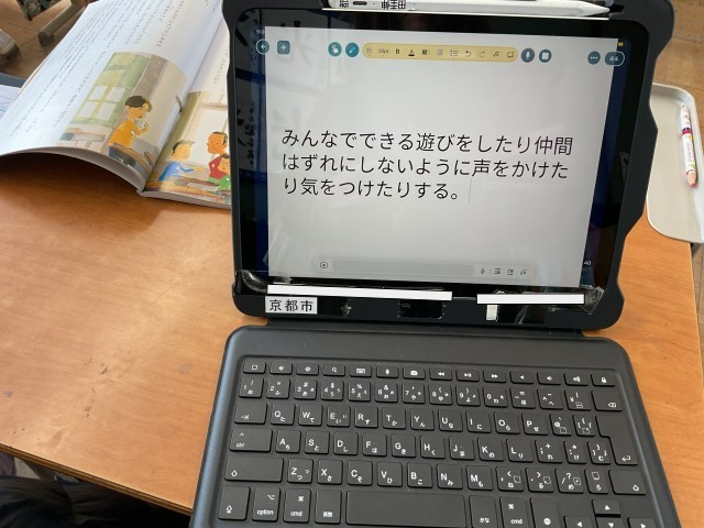 友だちと仲良く過ごすにはどんなことに気をつけたらいいか、タブレットに考えたことを書きこんで交流しました。