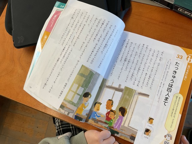 道徳で「卓球は4人まで」の学習をしました。