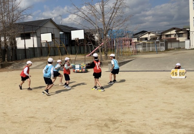 ポートボールの学習が始まりました。声を掛け合ってパスをつなぎ、コートの外からは応援やアドバイスをし、チーム力が育ってきています。準備運動や片付けまで進んで取り組み、寒い中でも頑張っています。
